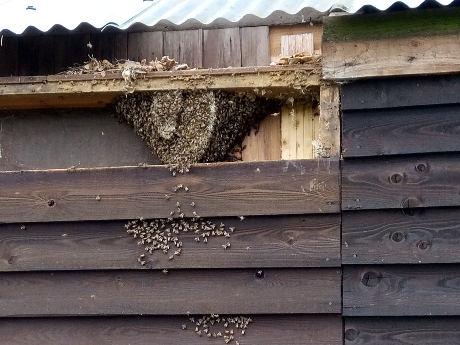 Swarming is the natural way for honey bees to increase the number of colonies. During the swarming season (usually April to September) the queen will leave the nest with up to half of the worker bees. They land not far from the original nest and form a cluster about the size of a rugby ball and stay like this for anything between two hours and two days, while scout bees look for a permanent home. During this time they are relatively easy for a beekeeper to collect. Once the bees have collectively decided on a new nest site, the swarm takes off again and moves to their new home. Bees that have taken up residence in a permanent nest site such as the wall of a shed or a cavity in a tree are much more difficult to remove, as they will attempt to return unless taken a few miles away. Bees in a swarm may look alarming, but they are generally quite dosile and will not sting unless provoked. The best course of action is to call a beekeeper as soon as possible and keep children and pets at a safe distance. Nests of bees can sometimes be removed, but often they are inaccessible without damage to the tree or building that they are nesting in. If you have a wasp nest, we cannot help you to remove it. We recommend that you find a commercial pest control company. If you have a nest of bumble bees, the best course of action is to leave them. They very seldom sting, and the nest will naturally die out during the Autumn. Bumble bees are valuable pollinators and part of the richness of our wildlife. Likewise solitary bees, which you may see nesting in holes in the ground or burrowing into the mortar in brick walls, are not dangerous and should be left where they are. The British Beekeepers Association produces a very informative leaflet entitled "Bees and wasps in your garden" which can be downloaded here